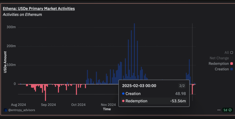● 尽管市场剧烈波动,USDe表现稳定,与法币稳定币走势一致。