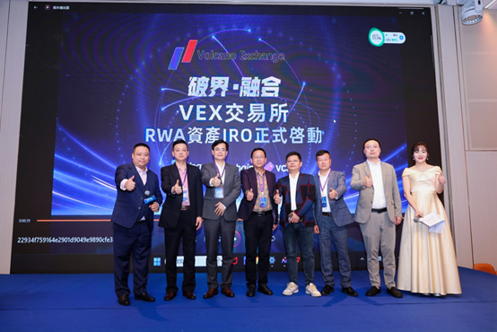 發佈會的重點環節是火山交易所RWA資產數字化生態的正式發布。火山生態董事長Sunny Sun,亞洲區塊鏈學會會長蔡志川,經濟學博士、北大光華民院教研所研究員蔡霖,融中實業集團聯合創始人邵躍峰,太控股集團董事孔慶龍,中國數字經濟產業發展研究課題組秘書長周響陽,火山科技集團副總經理丁燃珍等七位嘉賓共同上台,按下手印啟動儀式,現場嘉賓見證了這一歷史性時刻,這也標誌著火山交易所首批RWA資產IRO正式啟動。
