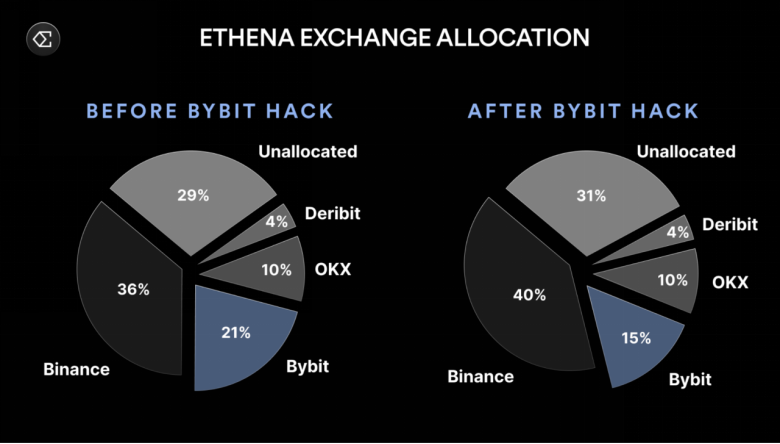 这种设计妙就妙在,即使交易所出了事,用户的核心资产也不会直接暴露在风险中。在Bybit黑客事件中,这一模式帮了大忙。Ethena的支持资产完全没有存在Bybit上,避免了直接损失。更重要的是,它还能迅速将价值3000万美元的对冲头寸从Bybit转移至其他平台,整个过程如同“战场换防”——旧的阵地沦陷了,新的防线早已筑好,灵活性让人眼前一亮。这不禁让人思考:如果更多项目也能用这种方式,是不是能少点提心吊胆的日子?