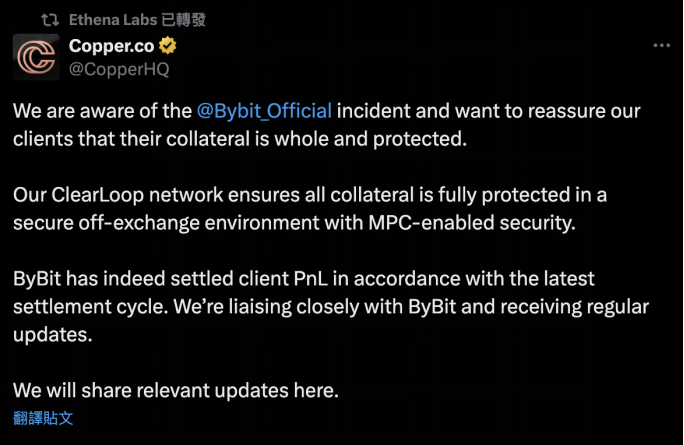 这种透明的做法,虽然简单,却很管用。当用户看到托管机构Copper亲自下场验证资产安全,当链上数据实时显示头寸转移进度,恐慌情绪迅速被理性取代。相比之下,Bybit这次的危机沟通也做得不错,两边一唱一和,反而让这场风波没那么吓人。这也让人忍不住想:以前总觉得信息披露会暴露弱点,现在发现真诚才是最大的护城河。